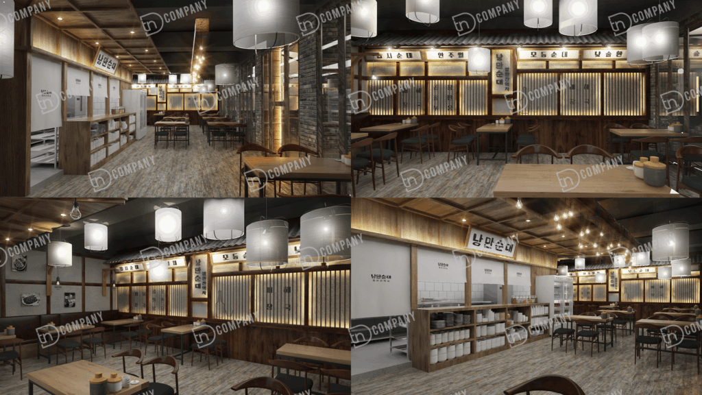 음식점 인테리어 디자인 3d 작업